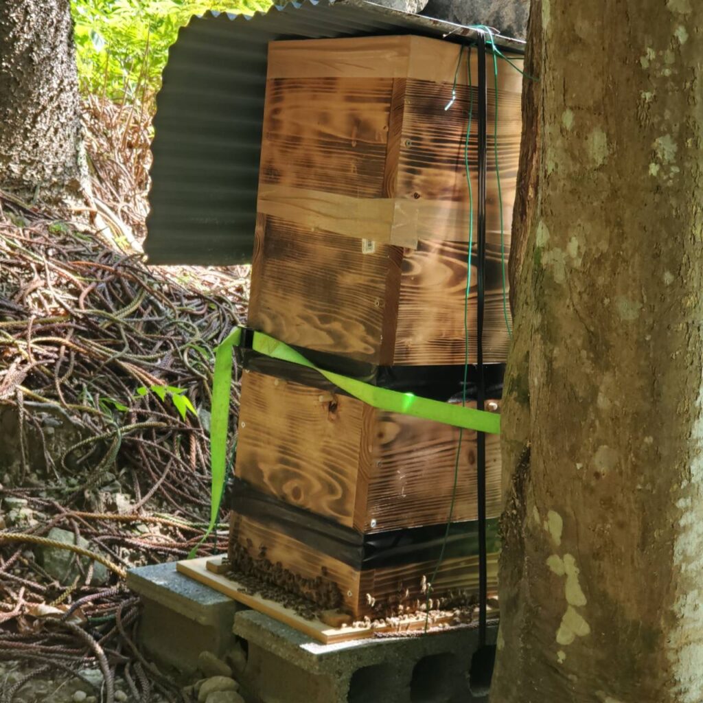 - 木の洞や巣箱に自分たちで巣板を作る。
